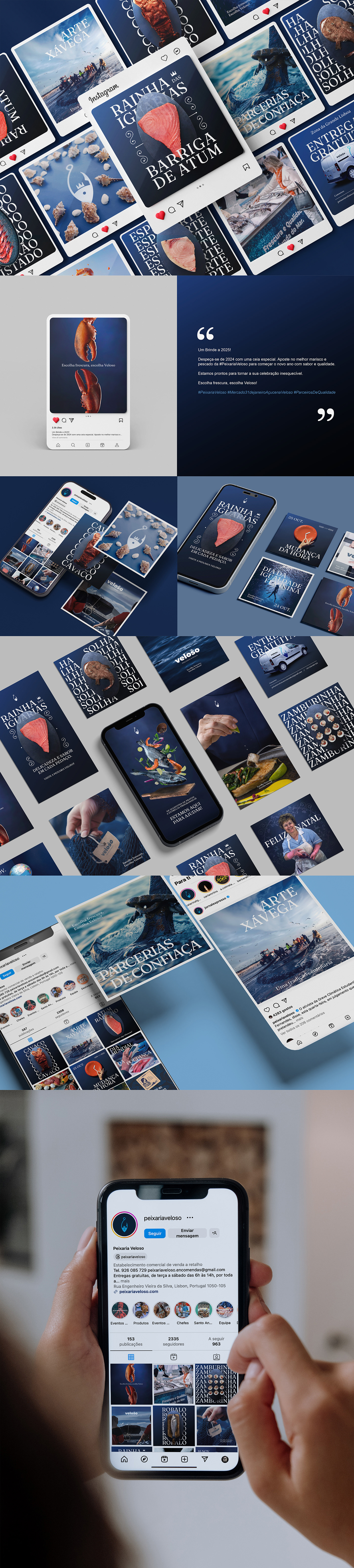 Projeto de social media para peixaria Veloso, estratégia de marketing digital para LinkedIn e Instagram.